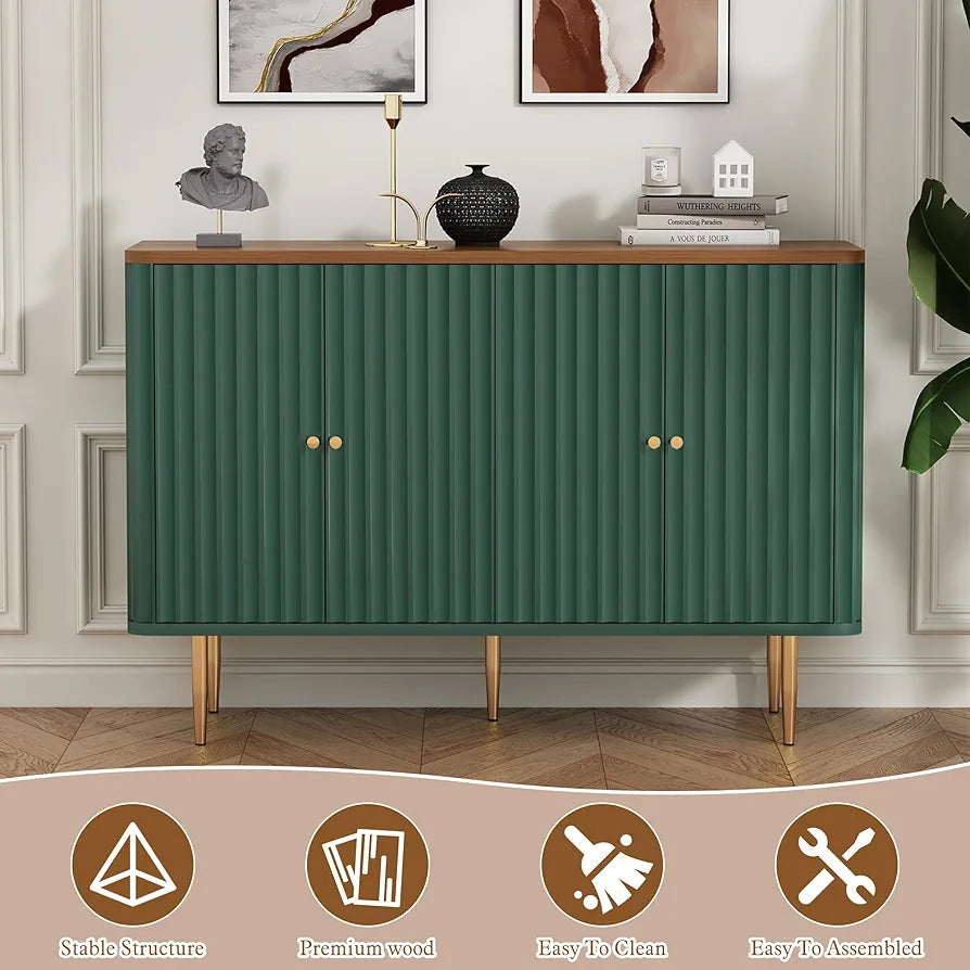 Buffet Cabinet with 4 Doors and Removable Shelves, Modern Accent Cabinet Sideboard Storage Cupboard for Living Room, Kitchen, Green