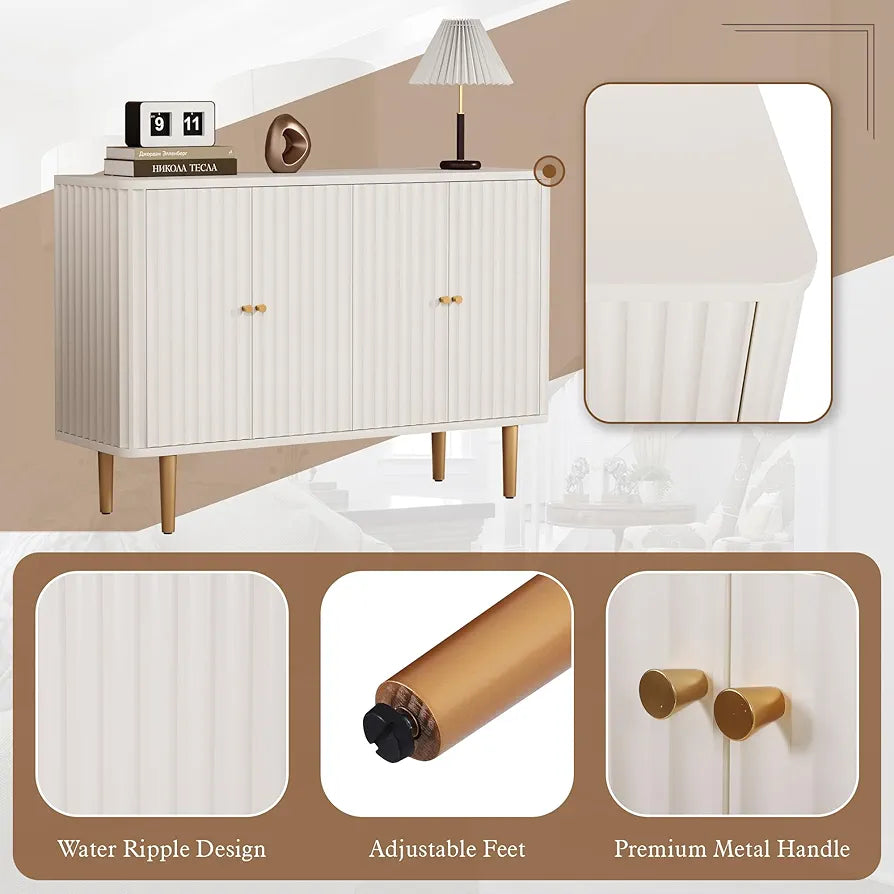 Cabinet with 4 Doors and Removable Shelves, Modern Accent Sideboard Storage Cabinet Storage Cupboard for Living Room, Kitchen, White